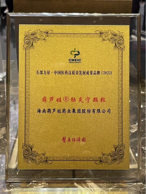 在本次发布会上,公司重点产品BG视讯牌肠炎宁颗粒同时荣膺“头部力量·中国医药高质量发展成果品牌(2022)”。BG视讯牌肠炎宁颗粒(2g),传承经典名方,临床广泛用于成人及儿童急慢性胃肠炎、腹泻等疾病的治疗,由于其杰出的临床价值,被纳入国家中医药管理局相关专家项目组制定的《中成药治疗小儿腹泻病临床应用指南》。